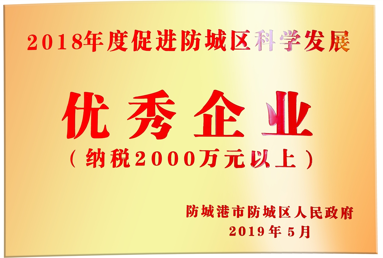 2018年度促進(jìn)防城區(qū)科學(xué)發(fā)展優(yōu)秀企業(yè)
